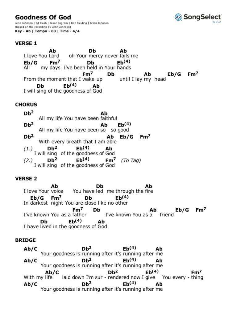 Web goodness of god chordspdf -. School Folsom Lake College. Ab I love Your voice C Ab You have led.